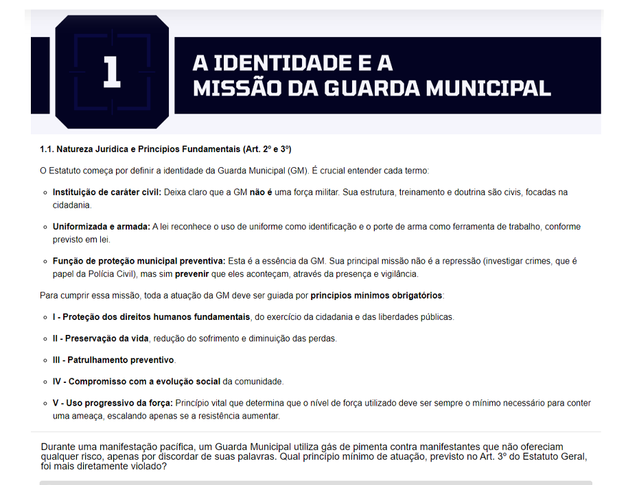 Nossos Guias Operacionais foram desenvolvidos para transformar o estudo da legislação em algo muito mais simples e prático. Cada guia traz o resumo objetivo das principais leis, destacando apenas o que realmente cai em prova, sem enrolação.
